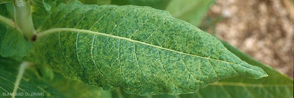 In addition to the general separation of PVY "tobacco" strains based on symptoms, another classification has been developed in the USA. It allows us to characterise three strains according to their behaviour on two tobacco genotypes, root-knot nematode (Meloidogyne incognita) susceptible (McNair 944) or resistant (NC 95). This classification was based on field observations which revealed that the varieties resistant to M. incognita showed severe necrosis in the presence of a particular strain of PVY. We can thus separate three strains: