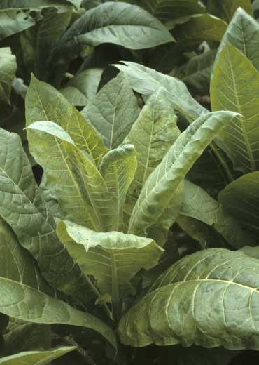 Tobacco etch virus (TEV) causes rather significant « vein clearing » and several small chlorotic spots  which gradually become necrotic. On bottom leaves some veins may turn brown and necrose. The plants are stunted when they have been infected early.