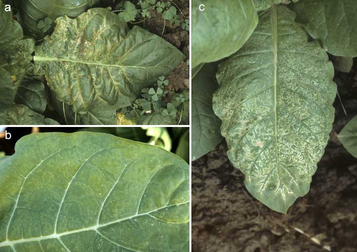 In addition to typical mosaic symptoms presented in the introduction of Leaf mosaics, other viral symptoms can be observed on tobacco  (several examples by pictures):