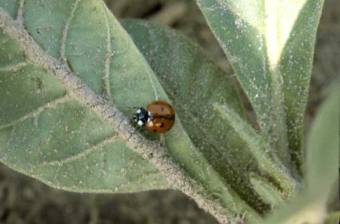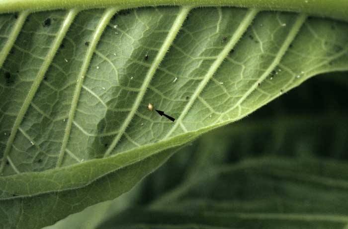Many natural auxiliary insects (beneficial insects) visit tobacco crops and help to reduce pest populations. Some of them have real specificities, others are much more polyphagous. In France, an exhaustive inventory is in progress to know them better and help to develop their potential parasitism or predation. As we have stated previously, the list of auxiliary species present in tobacco crops is not precisely known. Yet it is quite easy when inspecting a plot to ascertain the presence of the most common and most visible of them. These include for example several species of ladybirds (figure 1), midges (figure 2), hymenoptera parasitoids (figure 3), hoverflies (figure 4), lacewings ... Some of these insects are able to deal with other pests such as whiteflies, thrips, leafhoppers ... The effectiveness of these auxiliaries is still poorly understood. For example, in figure 5 one can observe a defoliating caterpillar parasitised by Apanteles congregatus. The parasitised caterpillar was invaded by several larvae which, at some point spun their white oval cocoons, clearly visible outside it. In the U.S. it is not uncommon to find over 90% of caterpillars parasitised in late season.