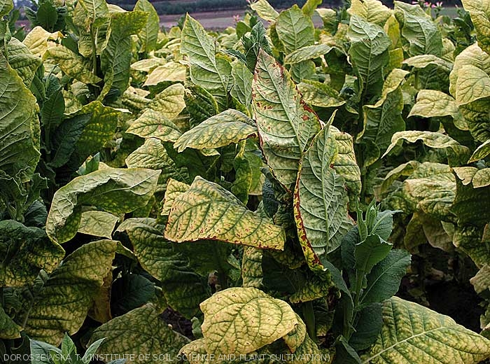 Given this situation, it is not uncommon to encounter  field plants with deficient or excessive fertilisation. These disorders are called non-parasitic diseases that we have grouped under the heading of Nutritional problems. Their symptoms are quite frequently yellowing of different degrees on different plant areas (figures 1 and 2). The following two themes describe the main deficiencies encountered, their symptoms and disrupted physiological functions in tobacco. When speaking about deficiencies, we tend to associate real deficiencies with induced deficiencies.
