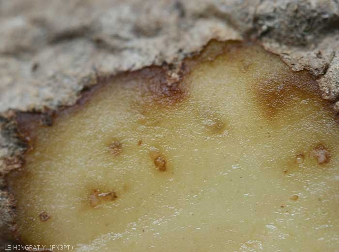 Tuber infection by M. chitwoodi may subsequently develop into internal reddish spots around the female nematodes (photo 7).
