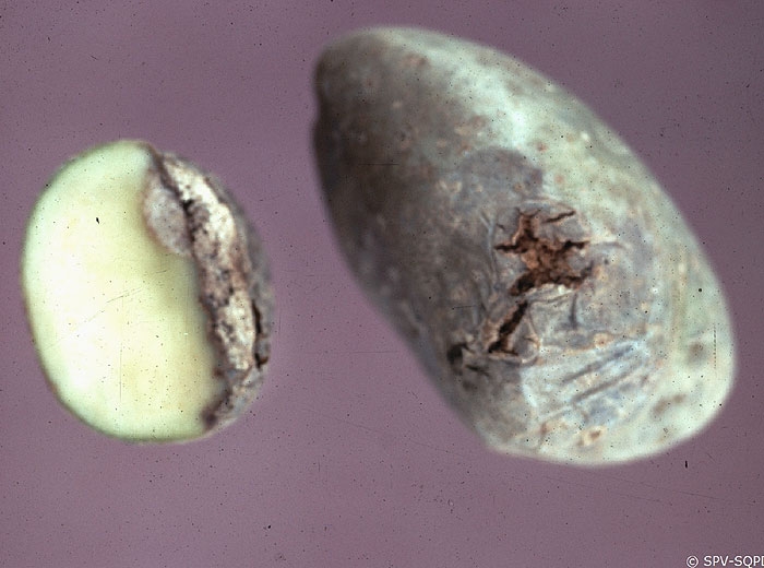 In storage, the nematodes (and the lesions) continue to develop within infested tubers; a mummified tuber is the final stage of infestation (photo 4).
