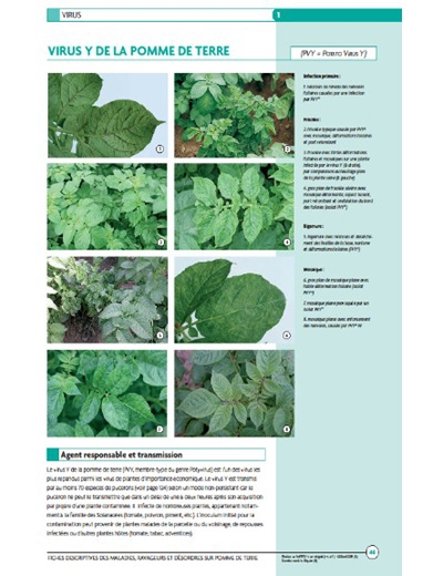 The aim of this guide, developped by a panel of potato experts, is to offer to a wide audience – producers, technicians, advisors, researchers, students and individuals – practical and accurate information on the main diseases, pests and disorders of the potato (photo 1). This guide offers a practical key (photo 2) to the easy identification of the major symptoms observed on potato crops and at harvest and then data sheets (photo 3) of potato diseases, pests and disorders.