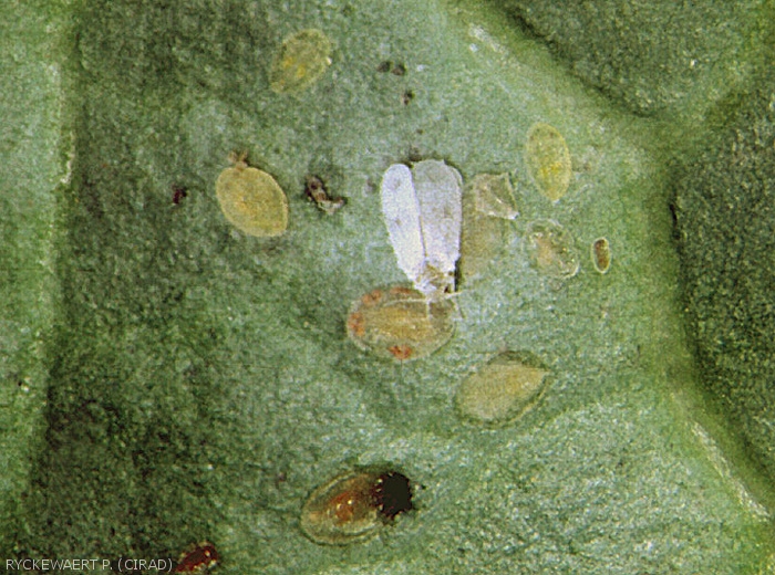 - Rather polyphagous insects widely distributed in the world, and particularly damaging in tropical areas. Certain species are vectors of numerous and formidable viruses. They belong to the order Hemiptera and the family Aleyrodidae.