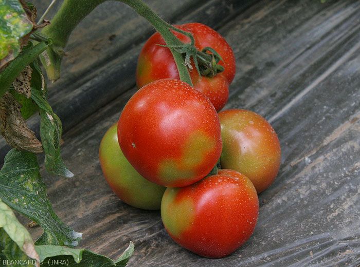 - The bites of larvae of biotype Bemisia tabaci cause physiological disorders in certain crops (silvering of zucchini (figure 14) and other Cucurbita , poor ripening of tomato (figure 15).