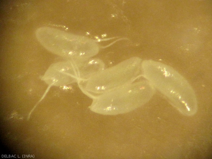 On very ripe fruits, after the start of an attack by Drosophila suzukii, larvae of different species of Drosophila may coexist.