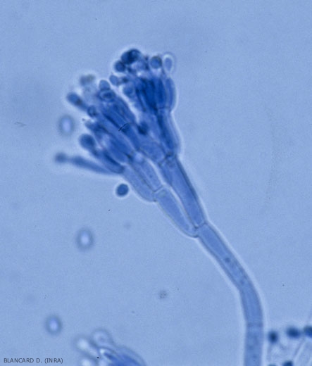 - Sporulation spore : Produce on colonized tissues pads bearing innumerable conidiophores generating conidia numbering in the millions.