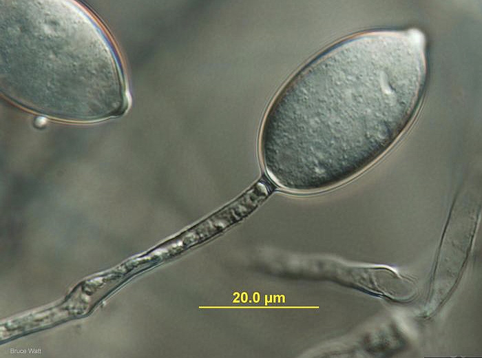 As previously reported, once on the leaf blade, the sporangia release flagellated zoospores . The optimum temperature for their release is of the order of 13 ° C . These zoospores, once fixed, emit a germ tube which enters the limbus mainly via the stomata but also, sometimes, directly through the cuticle and epidermal cells. The sporangia can also directly give rise to a germinal filament. The infection would be realized in 3 to 4 hours . The leaf tissues are then rapidly invaded by the mycelium non-partitioned (the optimum growth temperature is 23 ° C ), the activity of which gradually disorganizes the colonized tissues.