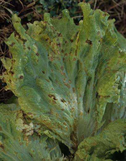 Comme vous pouvez le constater sur les figures 1 et 2, la maladie des anneaux nécrotiques de la salade et l'anthracnose, respectivement provoquées par l'agent des anneaux nécrotiques de la laitue (LRNA) et Microdochium panattonianum, sont à l'origine de taches et de nécroses qui couvrent parfois de larges secteurs sur les feuilles basses des salades. Leurs symptômes peuvent parfois prêter à confusion avec ceux engendrés par les agents pathogènes traités dans cette rubrique. Il en est de même pour Pectobacterium carotovorum subsp. carotovorum (figure 3) dont la pourriture interne de la tige des salades peut gagner les nervures des feuilles basses et déborder sur le limbe environnant, contribuant ainsi à quelques confusions.Nous vous conseillons de consulter les liens Microdochium panattonianum, LRNA et Pectobacterium carotovorum subsp. carotovorum pour avoir des détails sur ces maladies.