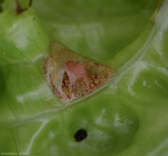 The etiology of the disease focused mainly on the possibility of phytoplasmosis. Indeed, a phytoplasma belonging to the group of aster yellows ("Aster Yellows") is reported in the literature as responsible for latex spots on the veins of leaves. This symptom frequently accompanies others, such as yellowing and reduction in leaf size and plant dwarfism. None of them have been observed in French cultural contexts. The laboratory investigations carried out to highlight a phytoplasma were unsuccessful, ruling out the possibility of late attacks generating only latex spots.