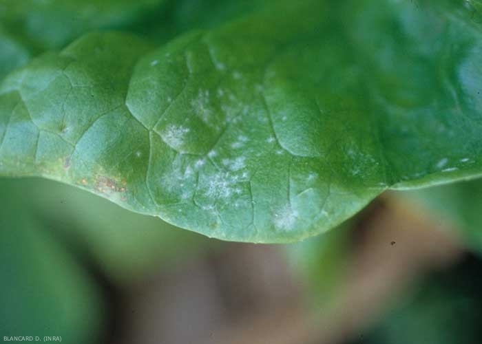 En France, ce champignon parasite obligatoire est assez confidentiel sur salades. On le retrouve plutôt sur chicorées, plus rarement sur laitues. Il colonise en premier lieu les feuilles basses. Il semble évident que ces dernières sont plus réceptives et que ce champignon trouve au sein du couvert végétal des conditions, notamment climatiques (faible luminosité, hygrométrie plus élevée), particulièrement propices à son développement.