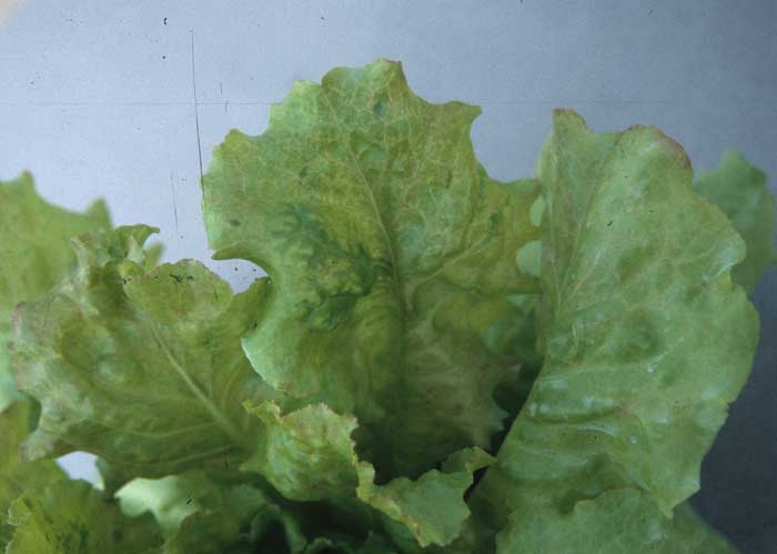 Symptoms are particularly noticeable in actively growing plants; they are generally more characteristic and more pronounced in butter, romaine or leaf lettuce varieties than in batavia or iceberg types (Figure 5).