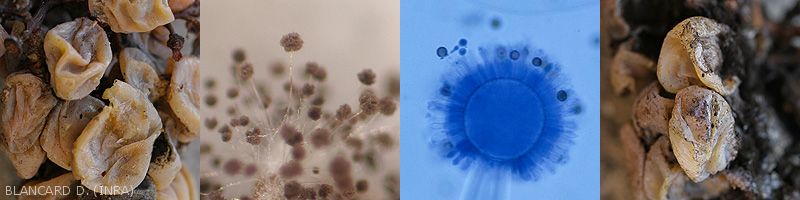 About thirty species of Aspergillus have been isolated on the vine, and on the grape berries. They are part of the epiphytic flora of the grapes, settling on wounded berries often located in the heart of the clusters and responsible for an rot often black on wine and table grapes.
