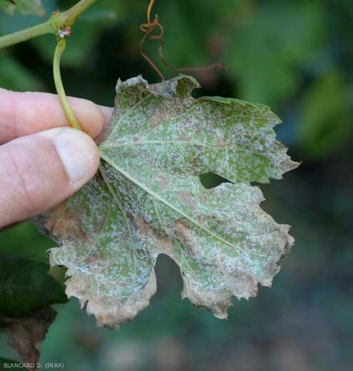 Plasmopara viticola develops exclusively on the aerial herbaceous organs of the vine, and more particularly on the youngest in the growth phase and saturated with water. It does not attack the hardened tissue in any way.