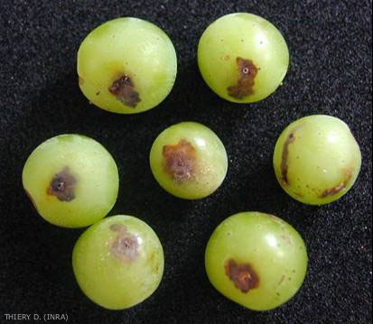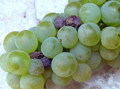 D'autres insectes ravageurs secondaires peuvent profiter des blessures de la baie pour s'installer. C'est le cas des drosophiles qui pondent dans les blessures et initient l'installation de la pourriture acide.