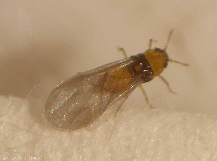 Daktulosphaira vitifoliae has a complex life cycle that fluctuates depending on the species of Vitis parasitized. On American species, the insect reveals 2 phases during its cycle: an epigeal or aerial phase, and another hypogea or root. On Vitis vinifiera , its entire cycle, which is less complex, is perpetuated in the hypogeal form on the roots; training of sexed adults is very rare.