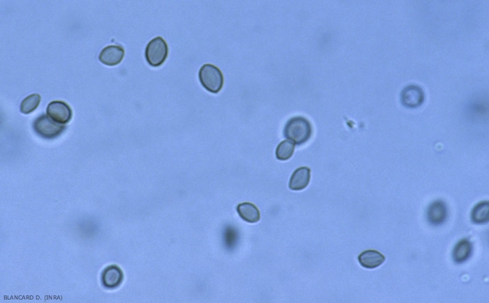 It is from these sporangia that are produced sporangiospores celled, hyaline to brown. These spores, round to ovoid (4-11 µm in diameter), have a slightly striated surface (figure 8).
