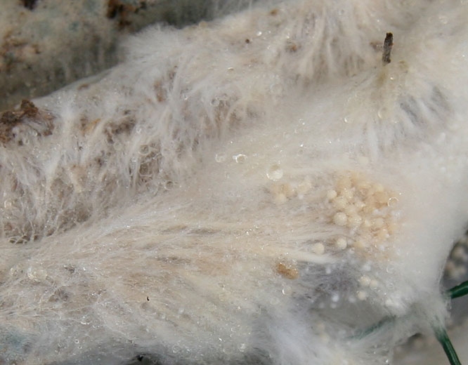 On damaged tissue, it quickly forms mycelium and sclerotia. These can germinate quickly because they do not need a dormant phase. They are, however, able to keep for several years in the soil without germinating.