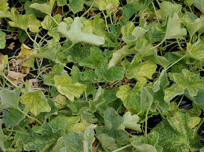 Tiny chlorotic spots more or less scattered on the lamina of melon leaflets (Figure 1). The latter gradually turns yellow and takes on a dull color . In severe attacks, some leaves may turn yellow, wilt and dry out. Delicate silky fabrics are visible within the plant cover.