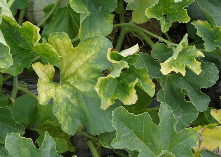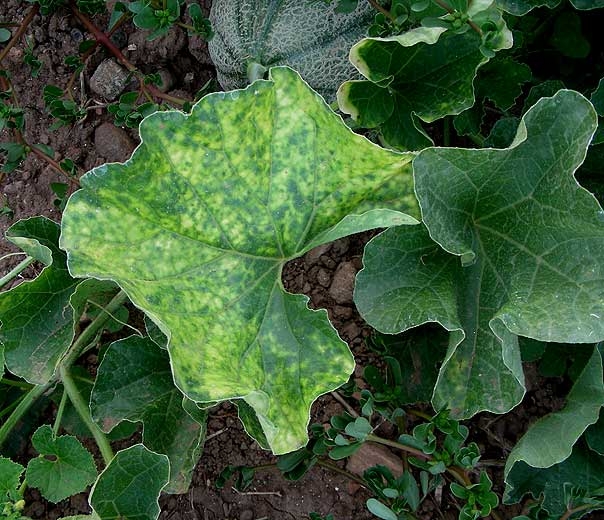 In France, on Charentais type melons, there is a more or less pronounced yellowing of the old leaves , which thicken and become brittle. No symptoms are observed on the young leaves. In other varieties, yellowing of the plant can be widespread and greatly affect yield.
