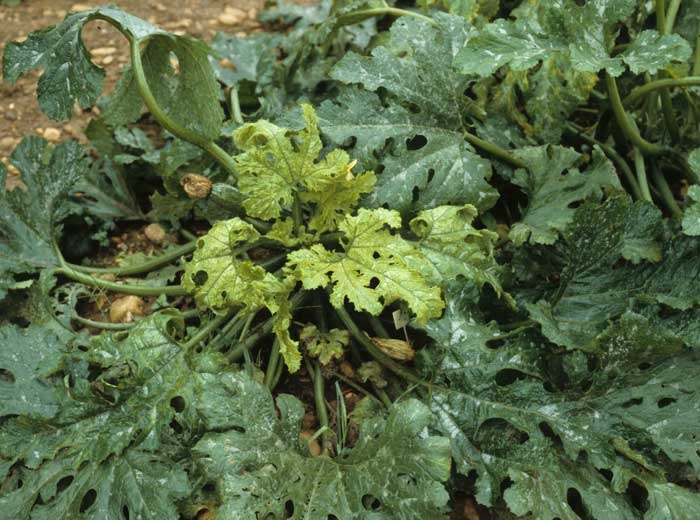 Symptoms are manifested in zucchini by the appearance of chlorotic spots on leaves infected (Figure 2). As a mosaic develops, the leaves curl up on themselves, deform (figure 3); the plant becomes blocked and takes on a yellowing appearance (figure 4).