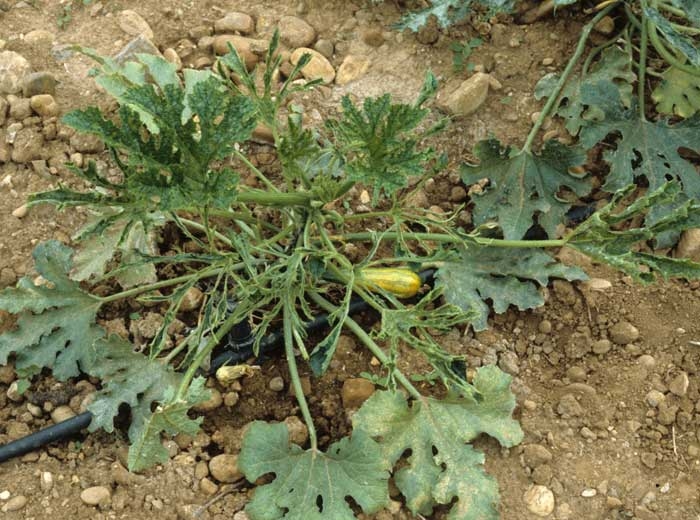 The courgette ( mosaic virus Zucchini yellow mosaic virus , ZYMV), due to the many strains reported from the first description of this virus, causes quite different symptoms. In addition, these can vary in intensity depending on the season (they are usually more severe in summer), the species or variety infected. It should be noted that more accentuated symptoms may be observed in the event of co-infection with other viruses (synergy), and in particular with the cucumber mosaic virus (CMV). ZYMV probably causes the most dramatic symptoms in zucchini (Figures 1 and 7), and it is often in this host that this virus has been initially reported in many countries.