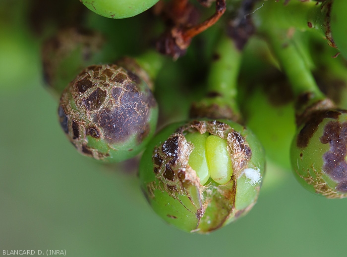 The altered pellucule of these berries affected by <i> <b> Elsinoë ampelina </b> </i> locally suberized, which could subsequently lead to their bursting.