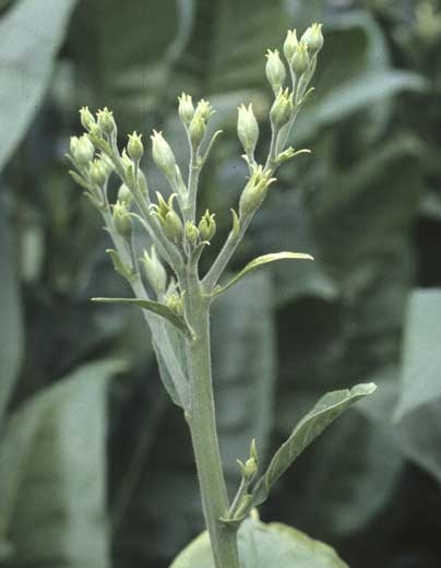 This disease occurs relatively late in the season, often after plant topping and bud growth inhibition, which is unfortunate for the diagnosis of this disease because the symptoms are difficult to observe and one will find them only on the few buds that have been spared from inhibition. We advise you to consult Stolbur in the section of "Yellow, chlorotic or white leaves " or the Stolbur Solanaceae fact sheet.