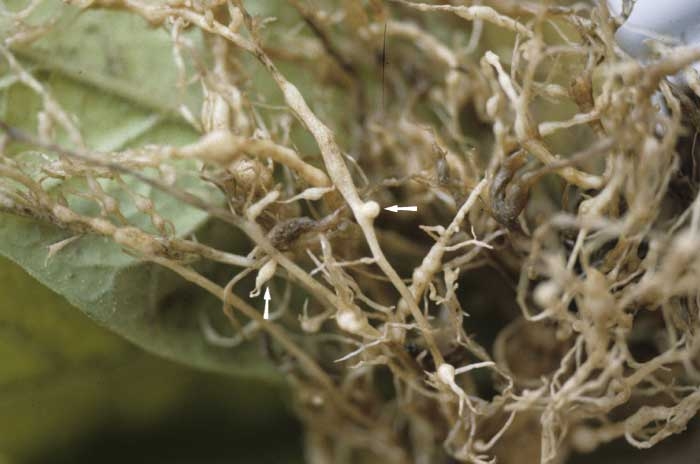 These malformations disturb the root development of plants which show reduced growth and wilt during the hottest hours of the day.
