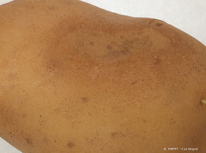 When the crops are subjected to temperatures above 30°C, the skin of the tubers, especially those at the top of the ridge, may turn brown; this is called “skin browning” or “bronze spots” (photos 4 and 5). Intense heat can also cause colouration or necrosis of the vascular ring (usually limited to the first centimetre from the stolon) (photo 6) and, exceptionally, black heart.