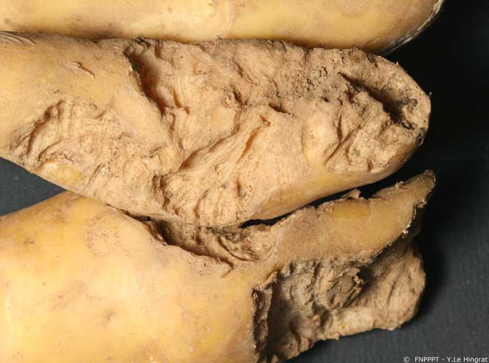 Potato crops can be affected from time to time by other  pests: rodents (rabbits), birds (corvids mainly), wild boars... that can cause damage, especially on the tubers, in gnawing them (photos 1 and 2) or digging.