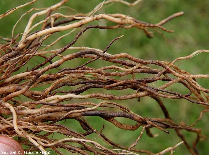 Root damage results in limiting the development of plants, which become more or less stunted. The lower leaves may be chlorotic and wilt during hot parts of the day, but may regain their turgor at night. In the most severe cases, leaf drying and leaf drop may be observed.