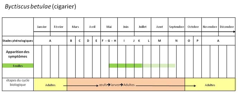 Synoptic of the development of Byctiscus betulae on vines (figure 5)