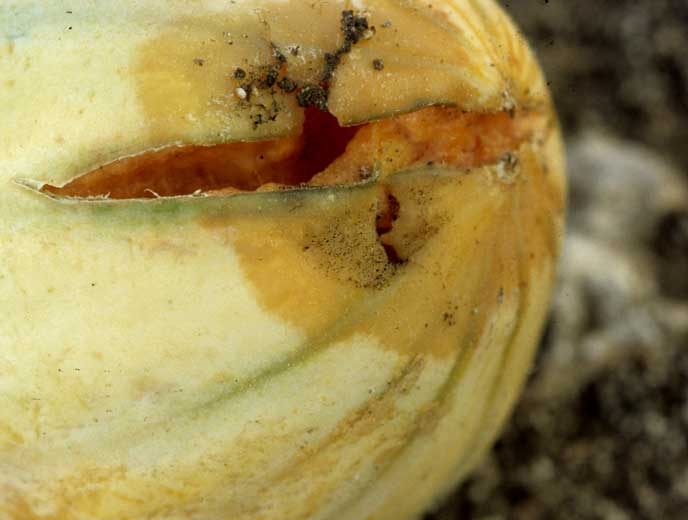 Its damage on Cucurbitaceae can occasionally be very important if the climatic conditions are lenient; in this case, it is responsible for rotting a large proportion of the fruit.