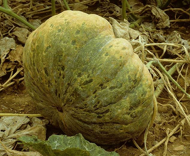 Zucchini foot whose growth was blocked very early as a result of an early viral infection.  <b> Zucchini yellow mosaic virus </b> (<i> Zucchini yellow mosaic virus </i>, ZYMV)