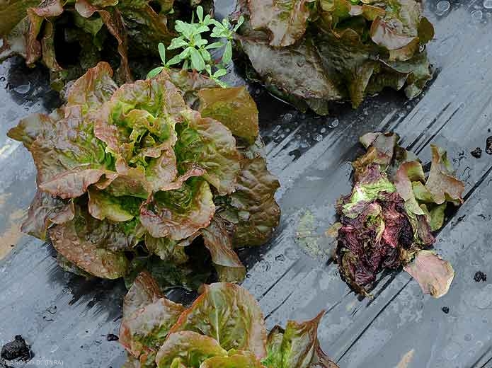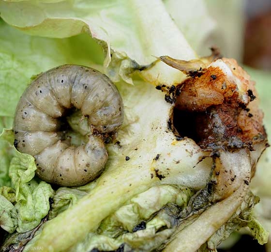 Las raíces, copa y hojas de lechuga son susceptibles de ser devoradas por la etapa oruga de de varios lepidópteros más o menos polífagos. Estos insectos pertenecen a varias familias, especialmente los noctuidos. Estos incluyen la polilla defoliadora Autographa gamma (L.) y las polillas que suelo habitan en el Agrotis segetum (Denis & Schiffermüller) y Agrotis ipsilon (Hufnagel) . Encontramos estas polillas (bucles), y muchas otras, en muchas áreas de producción alrededor del mundo donde a veces causan daños considerables en los cultivos de campo, como al amparo de ensaladas.