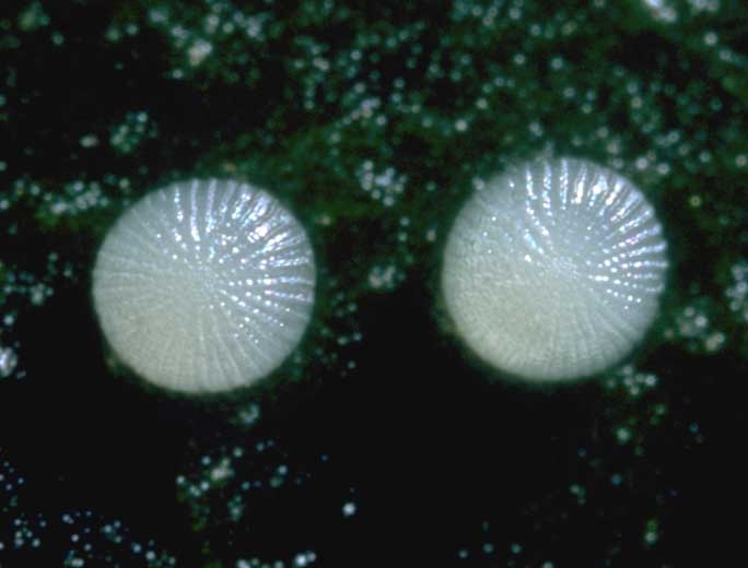 Los huevos (figura 7-1), transparentes, blancos, pardo negruzco, malva, etc., con un diámetro menor a un milímetro, se depositan individualmente o en grupos sobre la superficie de hojas o soportes varios (figura 2). Posteriormente, eclosionan y dan a luz orugas (figura 7-2) de 25 a 50 mm según la especie, provistas de poderosas mandíbulas que les permiten consumir constantemente plantas, especialmente hojas (figuras 3 y 4).