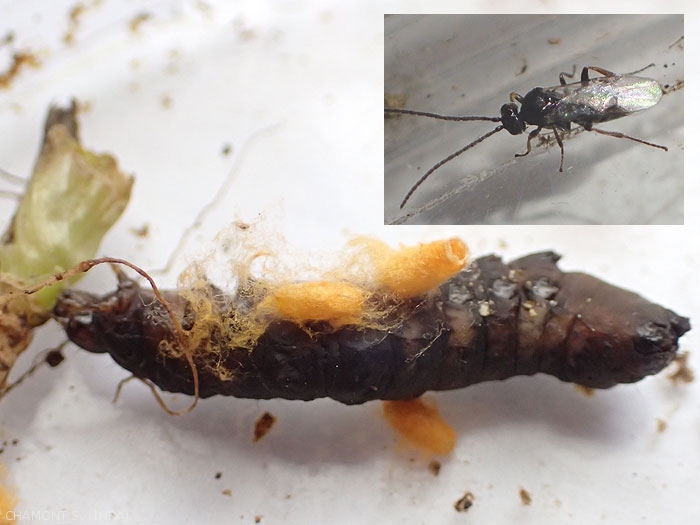 - Los parasitoides lepidópteros son muy numerosos. Se incluyen en primer lugar los oófagos mencionados anteriormente, así como una multitud de parasitoides larvarios, larvo-ninfales o ninfales. Las más importantes de las dos primeras categorías (larvas y larvas-ninfa) pertenecen a los Braconidae (figuras 4 y 5) y a los Ichneumonidae (figura 6).