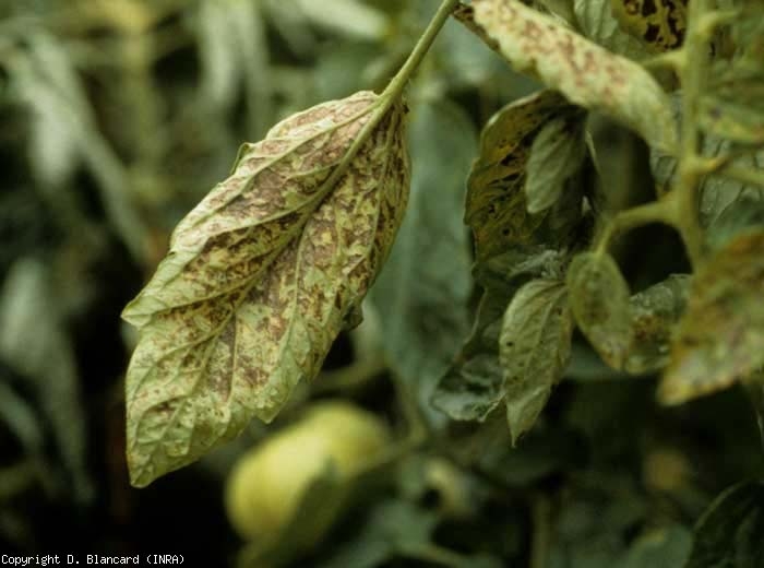 Dos tipos principales de los síntomas se distinguen convencionalmente en los tomates la hoja de causados por la patata PVY :