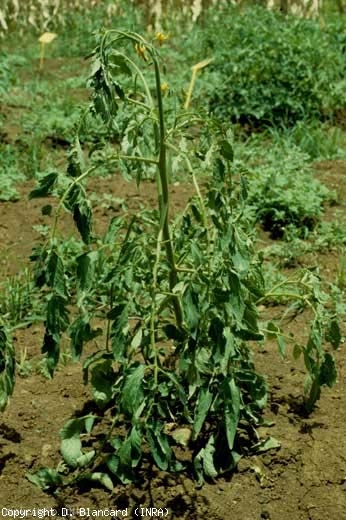 Pueden aparecer síntomas menos típicos, especialmente en condiciones que no son favorables a la marchitez bacteriana: crecimiento lento de las plantas, epinastia foliar, emisión de raíces rugosas en el tallo, coloración amarillenta de las hojas inferiores.