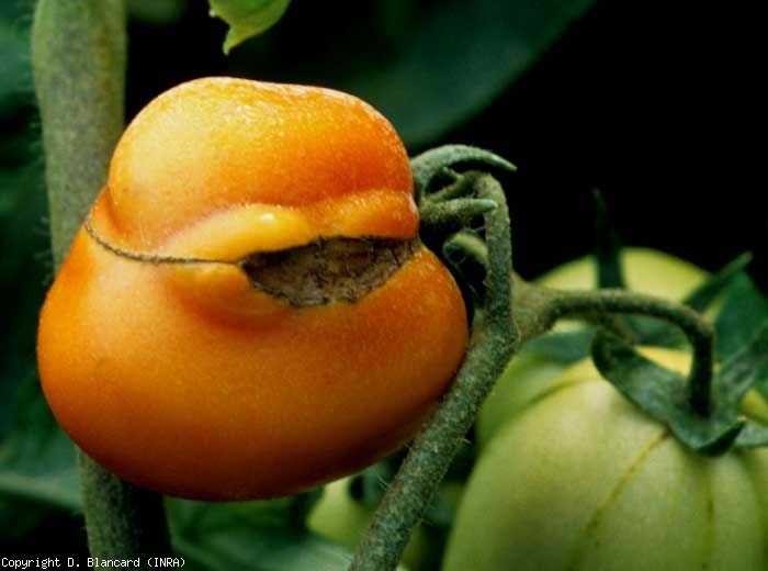También son la causa de estallidos localizados en determinadas frutas. De hecho, los tejidos suberizados que han perdido localmente su elasticidad no son capaces de compensar los brotes de crecimiento de la fruta. Las semillas y el tejido placentario son visibles.