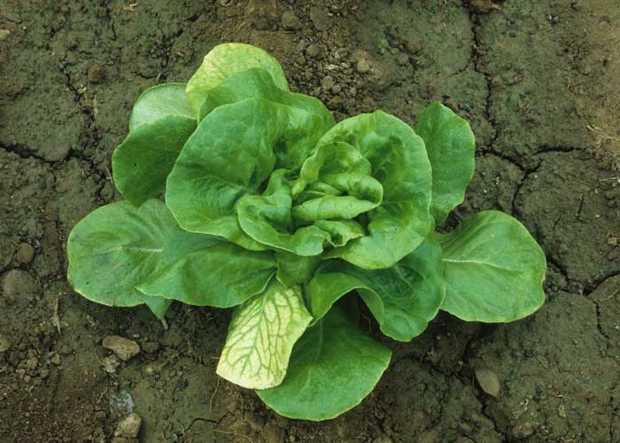 En las ensaladas producidas en otoño e invierno se observa ictericia interveinal casi idéntica a la causada por el Beet pseudo-yellows virus. Este síntoma aparece por primera vez en algunas hojas bajas. Cabe señalar que solo la parte del limbo expuesta a la luz presenta esta decoloración y que las nervaduras permanecen verdes (figura 1).