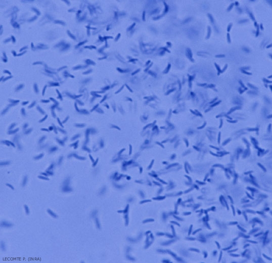 • La forma perfecta (teleomorfo), Eutypa lata , se caracteriza por una peritecia que se convierte en un estroma negruzco visible en la madera muerta en las áreas donde la corteza está exfoliada (Figuras 1 y 2). Estos peritecios globulares (300 a 500 µm) con un cuello bastante corto dan a la superficie de la madera colonizada un aspecto irregular. Contienen ascos (separados por paráfisis) cilíndro-claviformes, redondeados en la parte superior, provistos de un pedicelo largo (figura 3); su tamaño es de aproximadamente 30-60 x 4-7 µm. Cada ascus contiene típicamente 8 ascosporas que son de arqueadas (en forma de plátano) color amarillo pálido a marrón claro y miden 5-11 x 1,5-2 µm (Figura 4).
