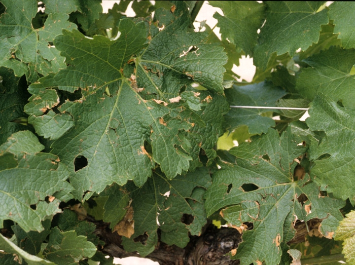 Tras fuertes lluvias, acompañadas de granizo, no es raro observar daños en las cepas vinculados al impacto de granizos sobre la vegetación. Estos últimos, al golpear las hojas, cañas y racimos, provocan daños que pueden afectar fuertemente el potencial fotosintético de las hojas, la resistencia de las ramas y la integridad de las uvas (Figuras 1 a 6).