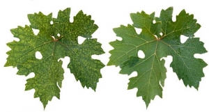 Hojas : acumulación de antocianinas en los pecíolos y venas que adquieren un tinte violáceo, mientras que el limbo se oscurece. Modificación del hábito de la planta y defoliación prematura (figura 8). Bayas : disminución de tamaño y número de bayas. |