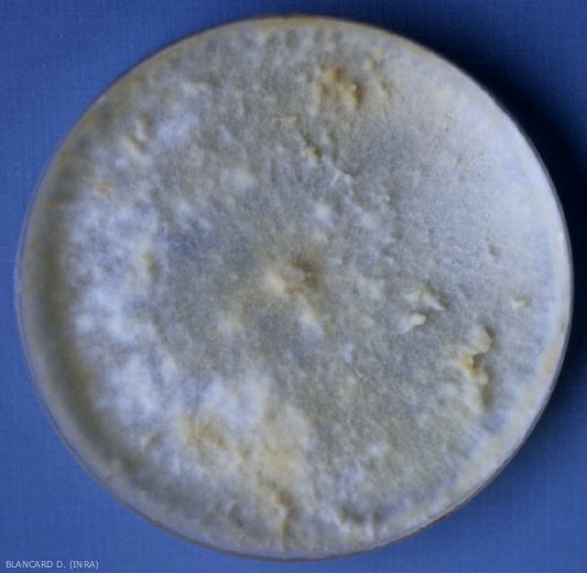 - Aislamiento, almacenamiento en medio artificial : c hongo de crecimiento relativamente lento, las colonias miceliales miden 1 a 2 centímetros después de una semana de incubación a 25 ° C en medio malta-agar. Estos tienen un tinte de beige a miel (Figuras 8 y 9) y producen un pigmento amarillo que se difunde en el medio.