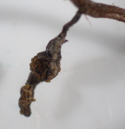 A nivel radicular , también se observa en las raicillas la presencia de nódulos ligados a picaduras de insectos; su frecuencia varía más o menos dependiendo de la especie de Vitis considerada. En la variedad europea, Vitis vinifera , los ataques aéreos se consideran excepcionales. Los ataques ocurren principalmente a nivel de las raíces que tienen nódulos en las raicillas y tuberosidades en las raíces más viejas.