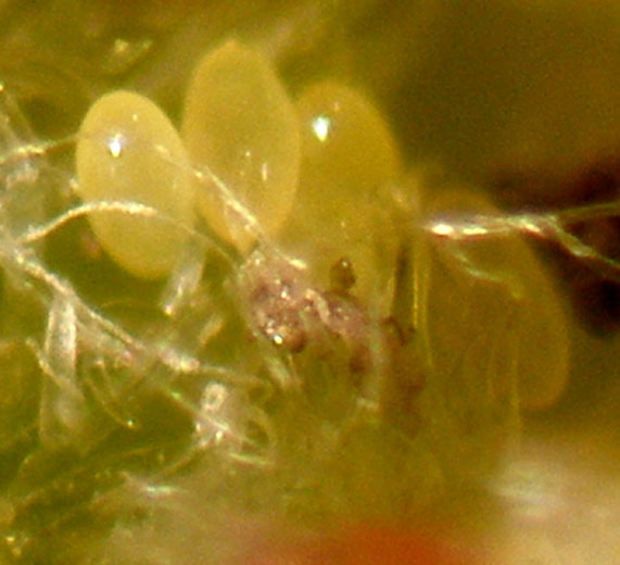 Los huevos de invierno (figura 1) de de Daktulosphaira vitifoliae 0,3 mm miden menos , tienen forma ovalada y color amarillo verdoso, y son más o menos brillantes.