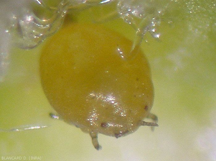 Las agallas adultas son más grandes (1,5 mm) y más que las formas de lesión de la raíz globular. Tienen cerdas rostrales más cortas. Primero de color amarillo claro, gradualmente se vuelven amarillo anaranjado.
